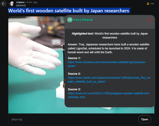 Fact Check simplifies your research by scanning highlighted text and searching the web for the top 5 most relevant articles. It then reads, and summarizes the key findings related to your query. Finally, Fact Check displays this to you without ever needing to leave your page.